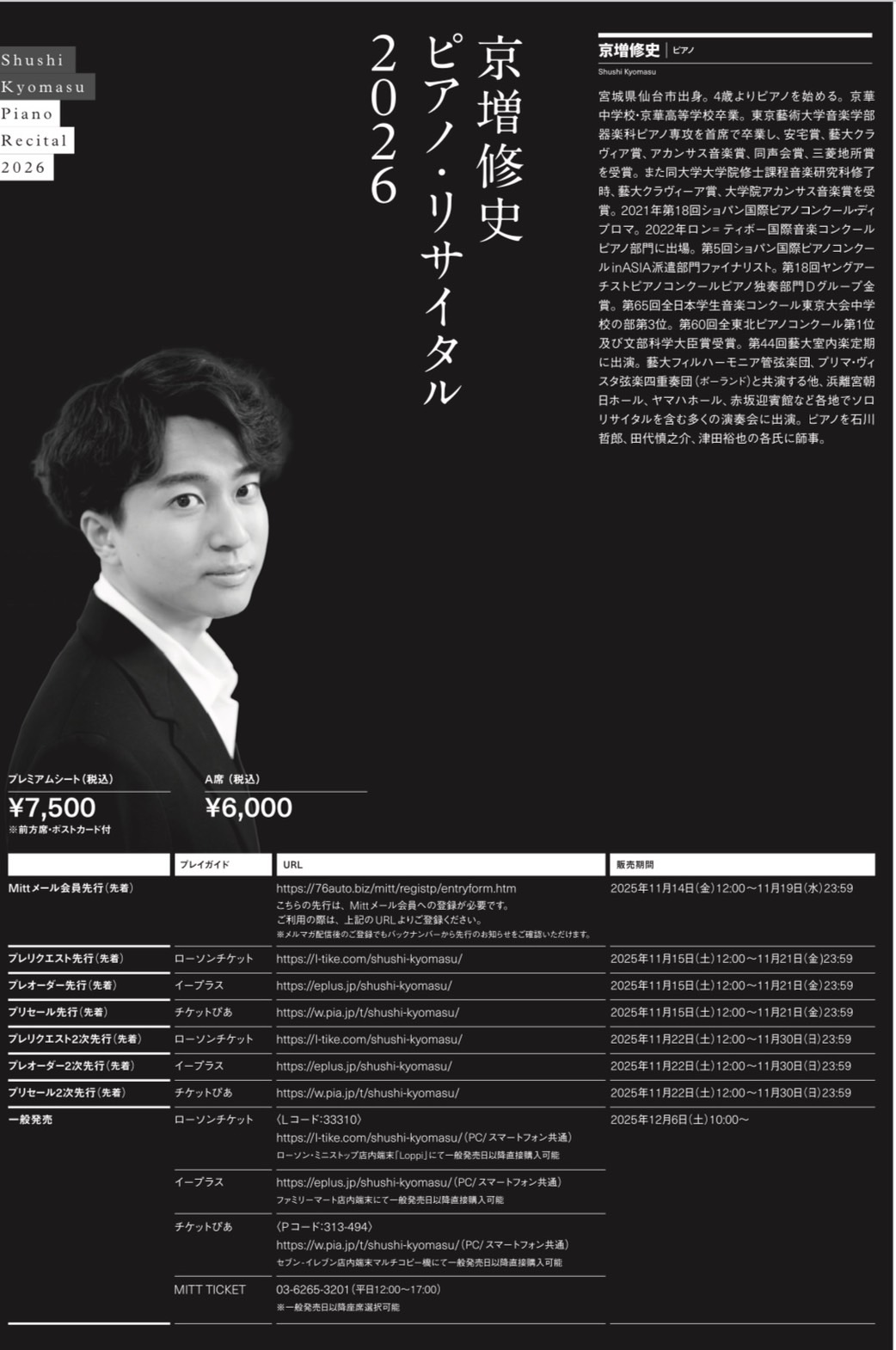 ピアノ・リサイタルを開催させて頂きます。チケットはローソンチケット、イープラス、チケットぴあで発売いたします。お待ちしております。